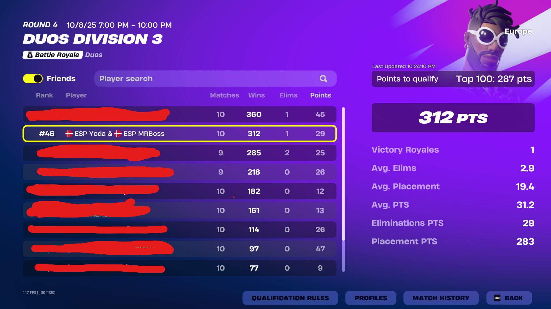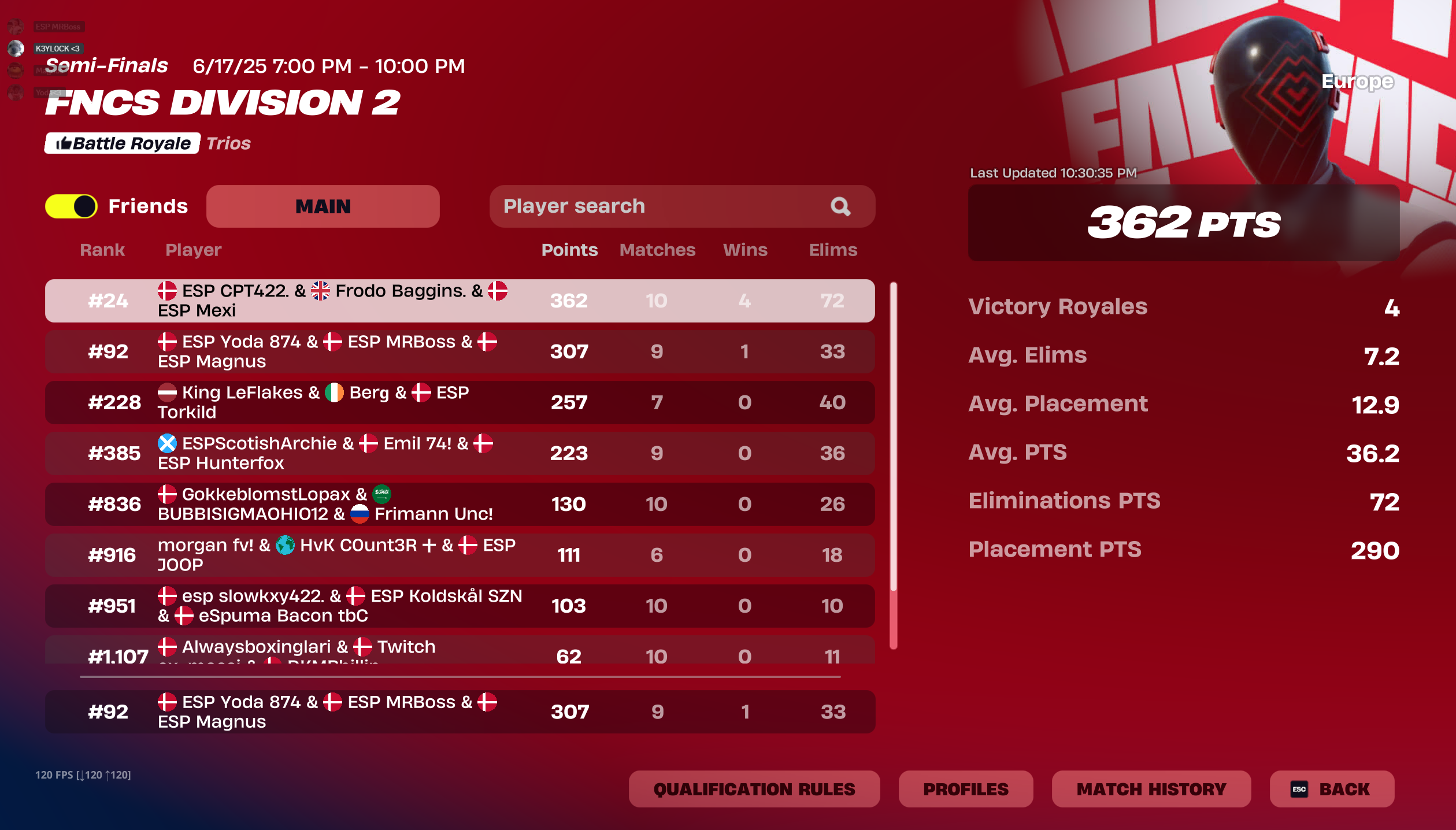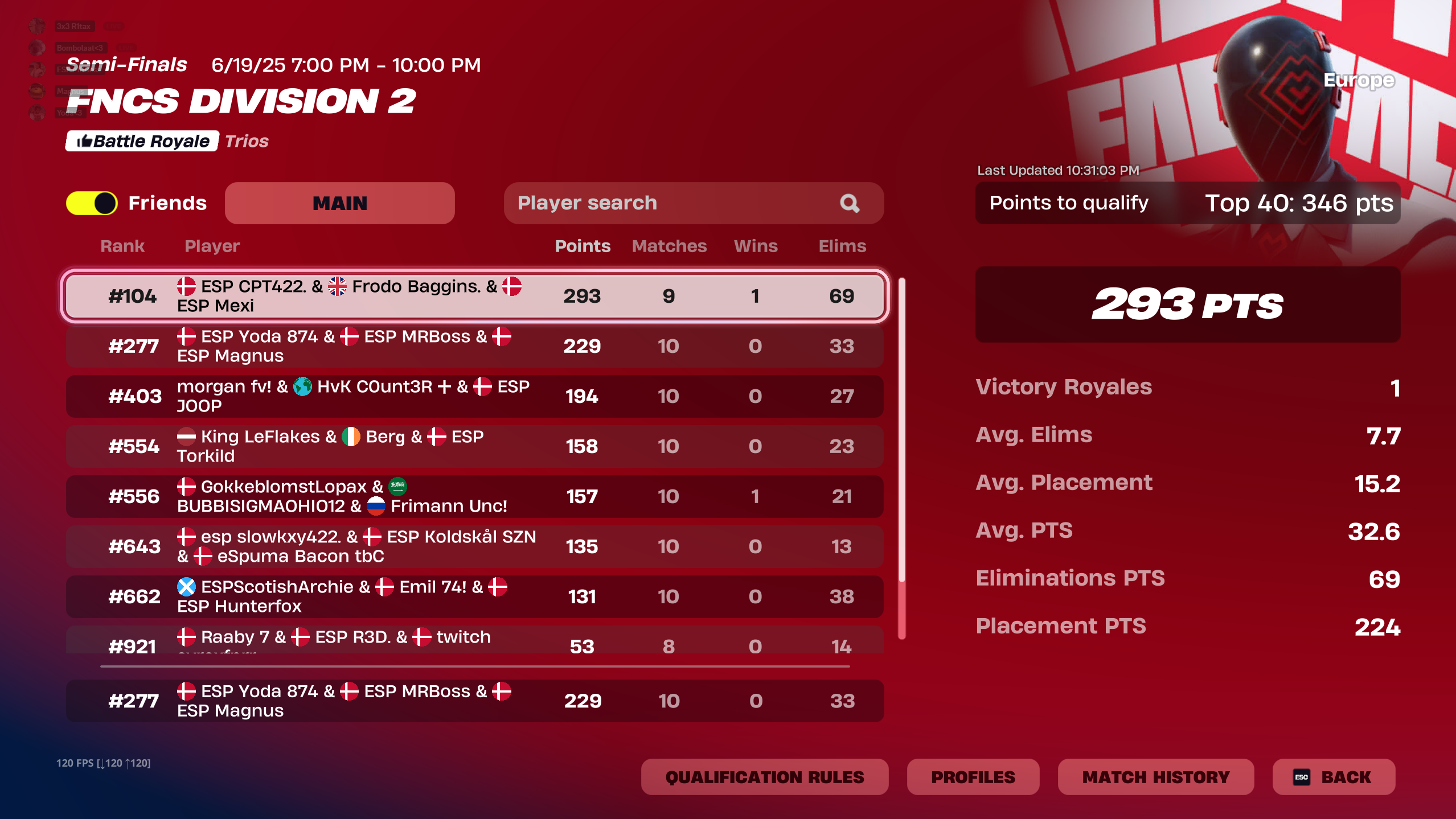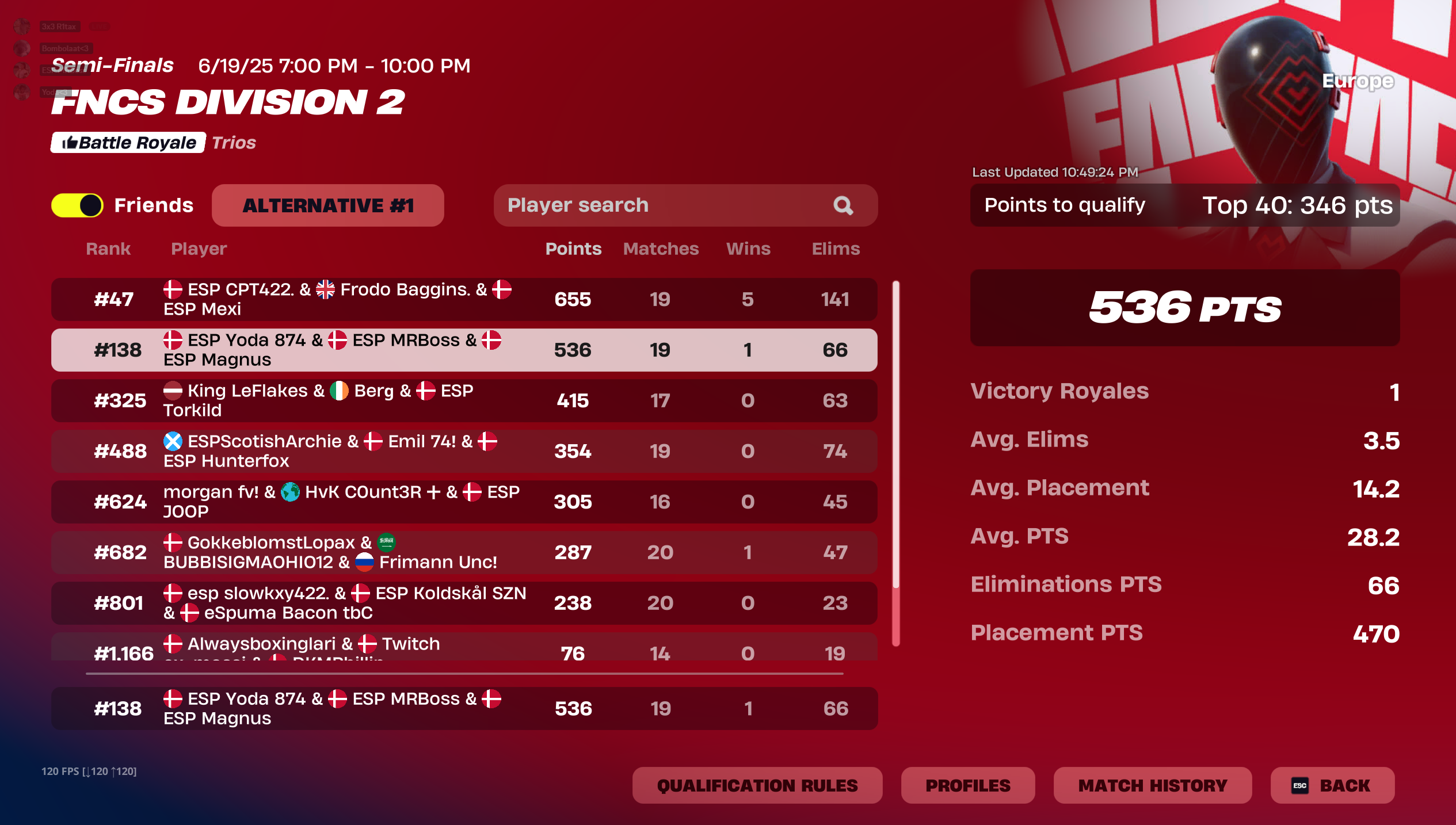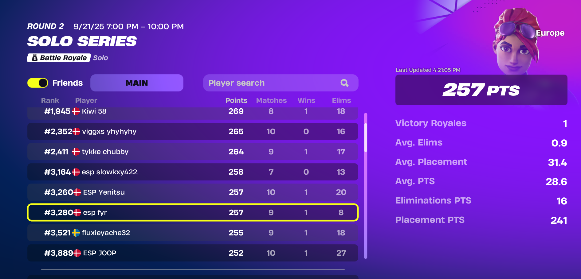 Se de seneste placeringer i solo series