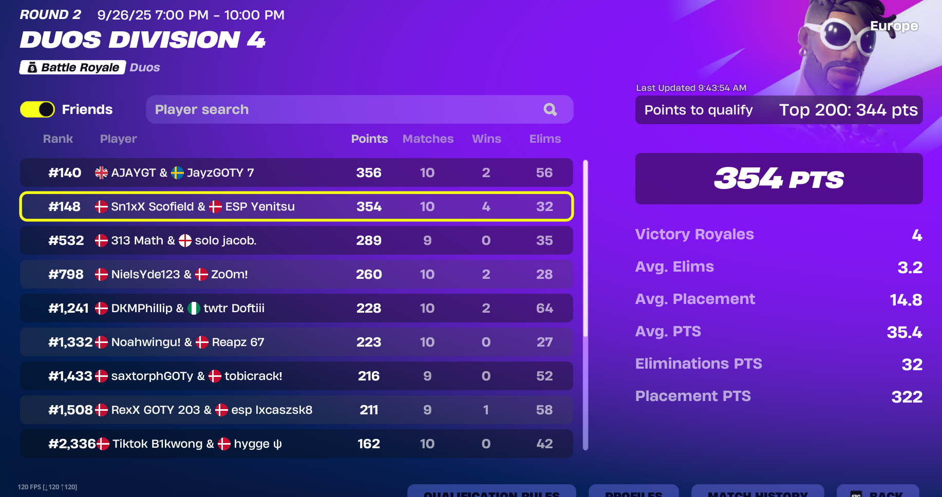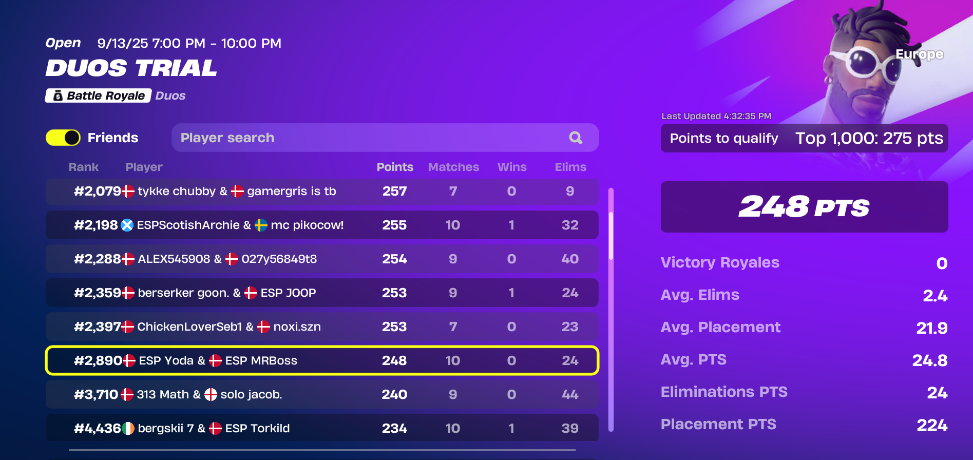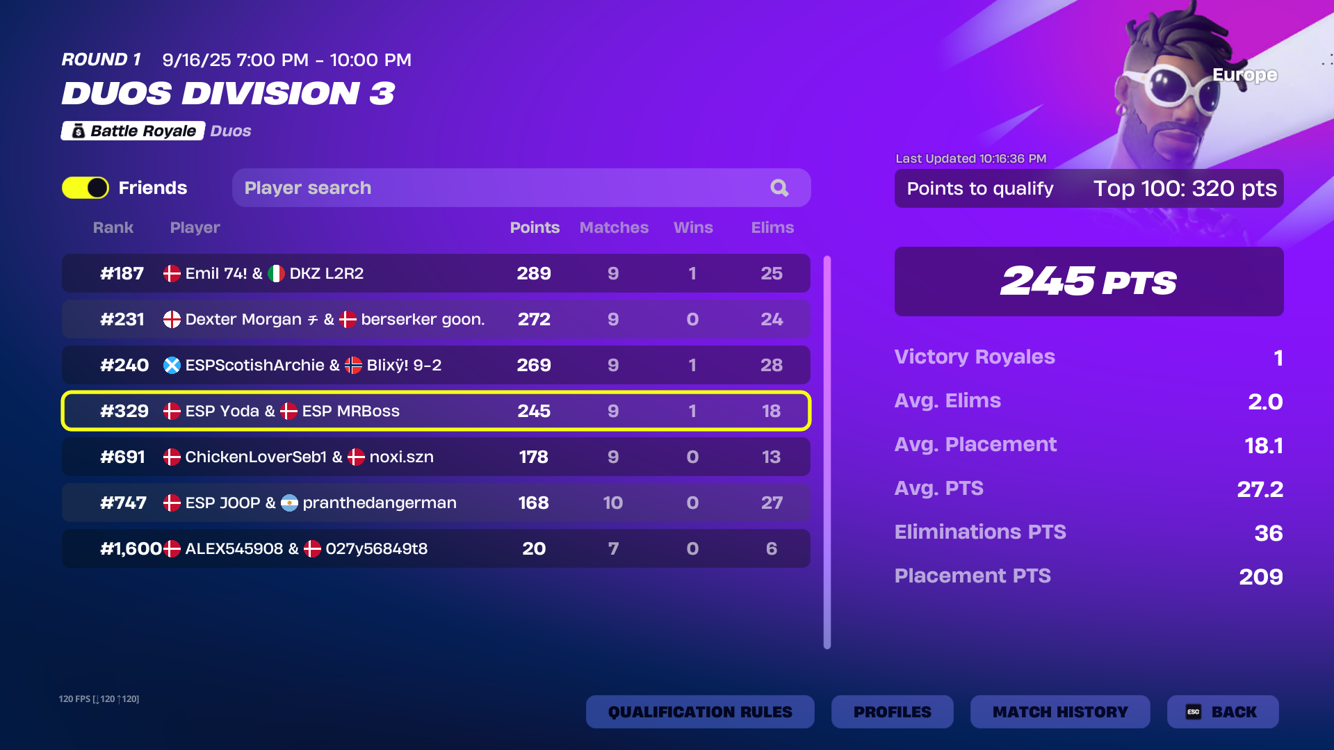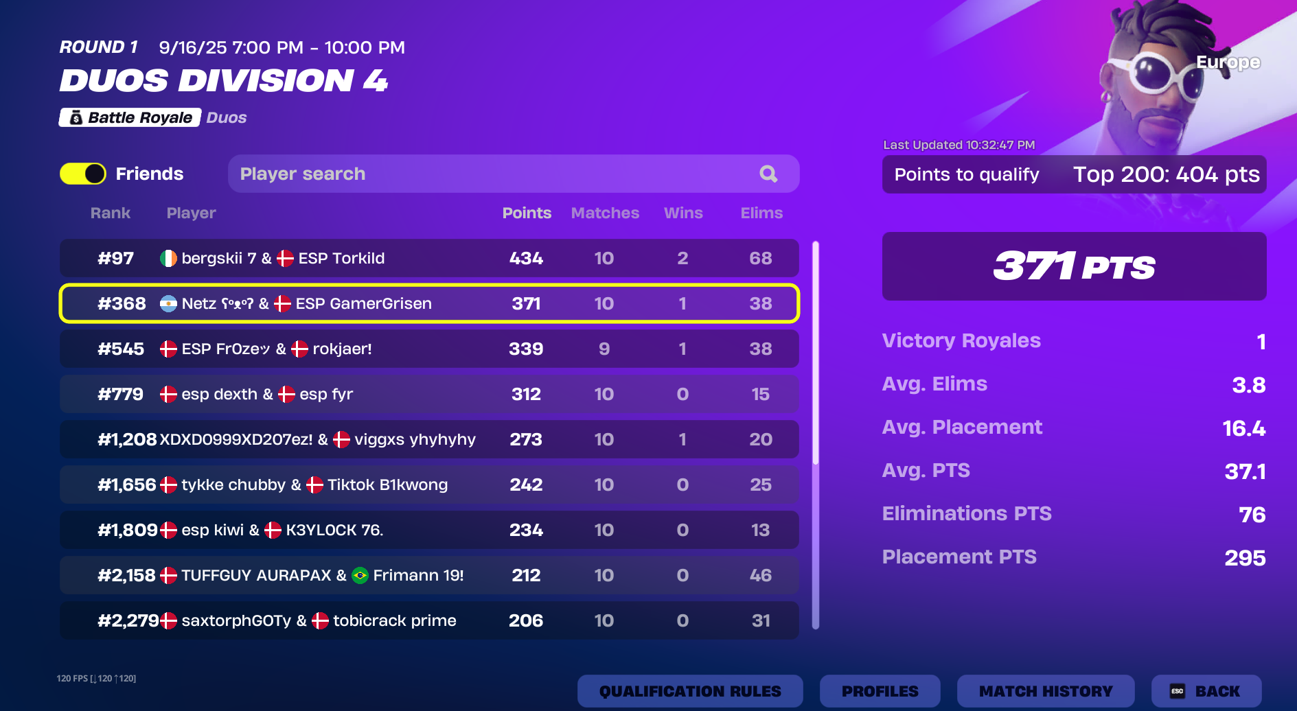 Se de seneste placeringer i duo division